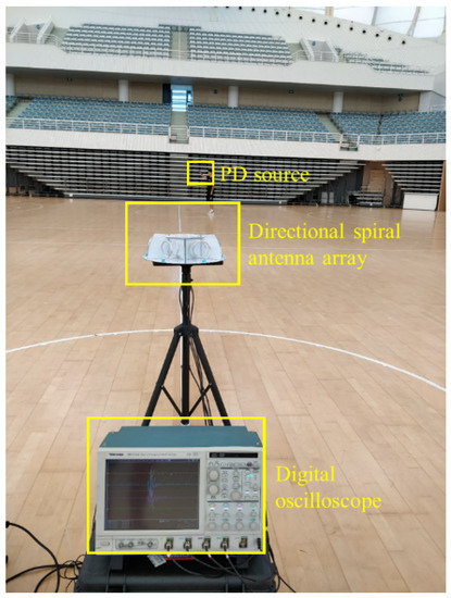 Partial discharge [1] is one of the main causes of power equipment insulation failure. An ultra high frequency (UHF) detection method [2] using the UHF component of the PD signal is widely used due to its strong anti-interference ability and high sensitivity. In recent years, many UHF detection methods based on time difference of arrival (TDOA) have been proposed to detect and locate the PD source using an omni-directional UHF sensor array in substations, which obtain fruitful results [3,4,5,6,7,8,9,10]. These methods mainly rely on the TDOA of UHF signals between sensors. To obtain accurate TDOA, the distance between sensors must be large enough (at least 1 × 2 m in a rectangular UHF sensor array of four elements), and the sample rate of acquisition and record equipment must also be high enough (generally more than 10 GHz). Therefore, the cost is quite high.