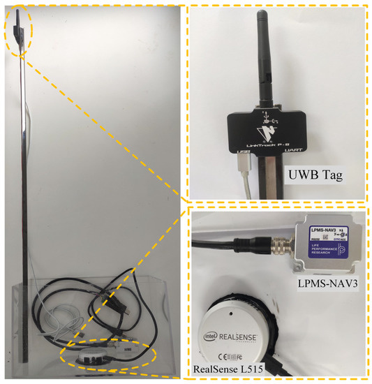 It is noted that the UWB positioning system can only give the reference trajectories rather than the actual trajectories. In ideal situations, the accuracy of the UWB positioning system is expected to be within 10 cm. However, in the laboratory, where there are many metal racks, its accuracy is degraded. In addition, due to its low updating frequency, the UWB scarcely locates the moving object with high accuracy. The UWB positioning tag, on the top of the stick which is fixed with the data recording device, sometimes moves fast. Hence, when the device is stationary, the measured UWB positioning data is to be trusted more.