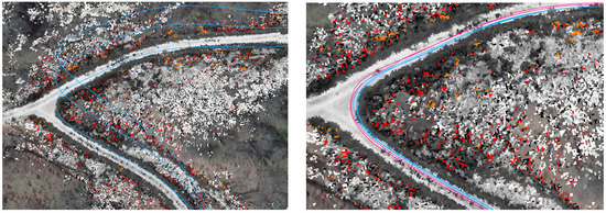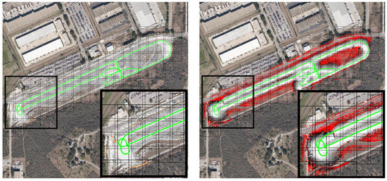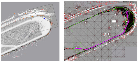43]. Since the map persists from day to day, sheets for the same area will be collected with different steady state offsets. In off-road environments with small trails, this effect can be enough to artificially constrict (in the map) a trail that is traversable in the world, as illustrated in [