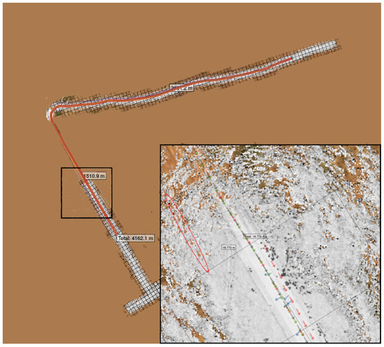 Similarly, a dirt trail of about 1.2 km in length was mapped, as shown in
