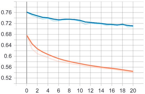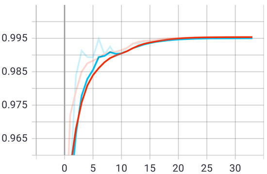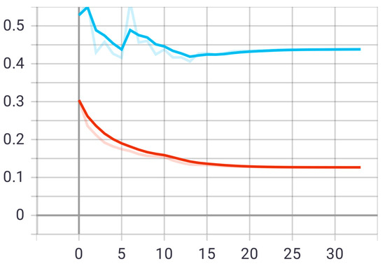 Through these functions, the model was trained on the training sample and then checked its results against the aforementioned test sample, which improved the values of the hidden coefficients for the last layer in the model in order to match the images to be trained in each phase. This process was repeated for all training epochs, and in epochs 14 and above, it was noticed that this accuracy did not improve more than a certain threshold, meaning that every time the model was trained on a set of images from the training sample, it checked images in the validation sample and obtained a certain accuracy. In this case, the accuracy reached 0.995, meaning that the accuracy of the model during the training and validation phases was 99.5%. The loss curve is also shown in Figure 6.