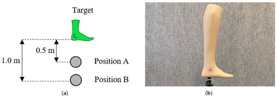 Experimental Setup for the foot reconstruction with the ToF and SL cameras: (a) experimental setup for the foot reconstruction; (b) foot model used for the reconstruction setup.