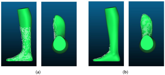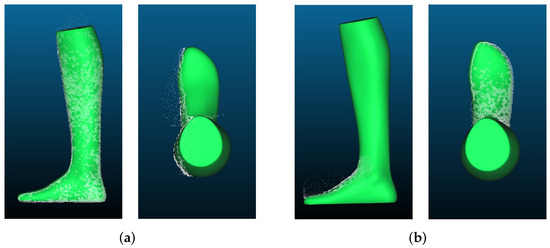 Point clouds recorded with an iPhone 11 Pro and processed with Agisoft Metashape: (a) length reconstruction; (b) width reconstruction.