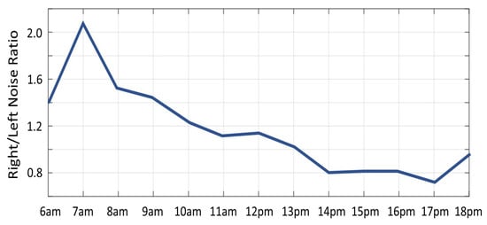 The noise ratio between right and left sides of the face plotted per hour.