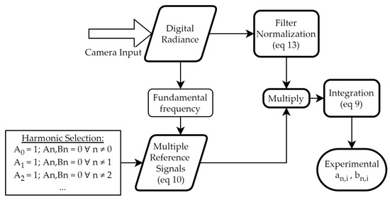 The experimental effective spectral radiances must now be post-processed to obtain the different harmonics (, ). Figure 3 summarizes the procedure.