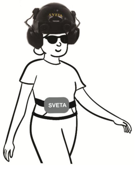 Wearable devices (prototypes) have been developed for a wide range of different applications for blind people in addition to travel. This includes devices to support social interaction, recognise social signals and gestures [20,21], provide information about facial expressions [22], the number of people in their surroundings and their position relative to the user [23] and simulate eye contact [24]. Other applications include reading devices [25,26], reading music notation for people with low vision [27], dancing [28,29], running [30], education [31], colour perception [32], identifying medicines in a cabinet [33] and improving gait [34,35]. The development of devices for deafblind people has focused on tactile communication, using Braille or a deafblind manual alphabet [36,37,38], but also includes other applications such as support for deafblind cat owners [39].