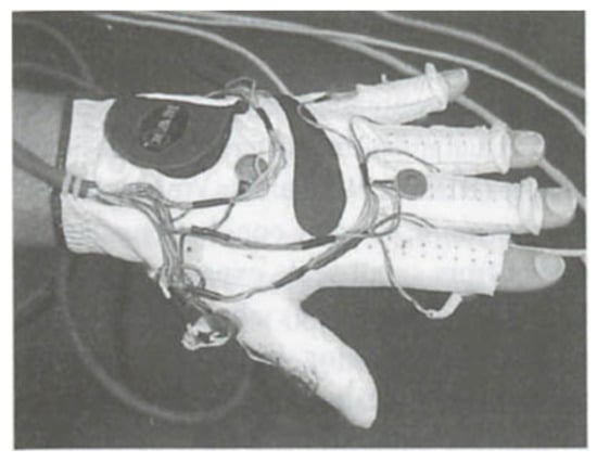 - Caporusso, N.; Biasi, L.; Cinquepalmi, G.; Trotta, G.F.; Brunetti, A.; Bevilacqua, V. A wearable device supporting multiple touch-and gesture-based languages for the deaf-blind. In Proceedings of the International Conference on Applied Human Factors and Ergonomics, San Diego, CA, USA, 16–20 July 2017; pp. 32–41. [Google Scholar]