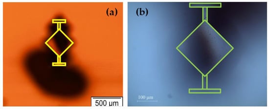 (a,b) Bright-field microscopic images demonstrating the deposition of silver nanoparticles on the backside surface of 200 µm side-length square-plate MEMS resonator.