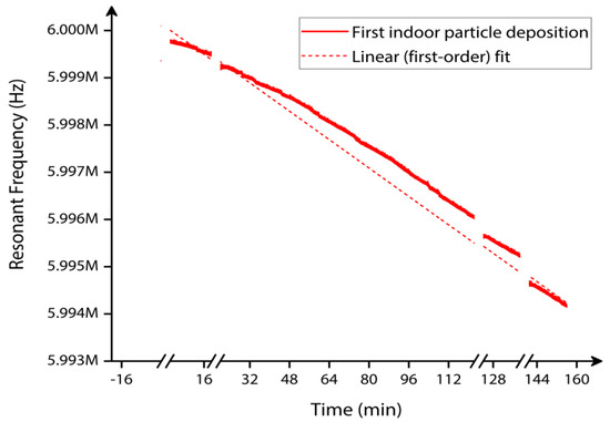 This section presents the experimental results of real-time monitoring of the resonant frequency during 50 nm silver nanoparticle deposition and unsized indoor particle deposition.