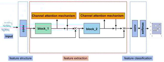 The camResNet model is excellent for extracting classification-related feature information because it adds the channel attention mechanism based on the ResNet model. The process of the camResNet model includes three steps: feature structure building, feature extraction, and feature classification, as shown in Figure 2.
