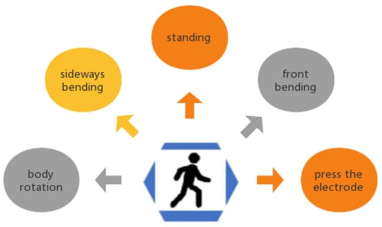 | II | Upper body anterior flexion and extension (upper body front bending) | Bend the spine forward to 45 degrees and then return upright. Bending speed: about 0.2 cycles/sec |