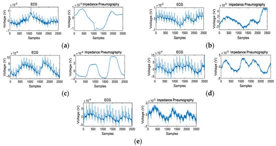 - Zhang, Z.; Silva, I.; Wu, D.; Zheng, J.; Wu, H.; Wang, W. Adaptive motion artefact reduction in respiration and ECG signals for wearable healthcare monitoring systems. Med. Biol. Eng. Comput. 2014, 52, 1019–1030. [Google Scholar] [CrossRef] [PubMed] [Green Version]