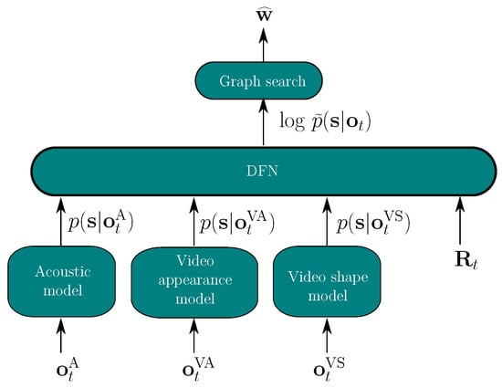 Decision fusion is regarded an effective fusion strategy for AVSR. Individual decisions of multiple classifiers’ are integrated into a single joint decision. Decision fusion covers many different forms, such as dynamic stream-weighting [10] or state-based decision fusion (SBDF), e.g., in [11,12,13,14]. In [15], the output logits of the single-modality networks were fed into a fully connected layer. Instead of fusing decisions, representation fusion is an alternative fusion approach for AVSR, e.g., via multi-modal attentions [16] or via gating [17,18]—for example in [18], which proposed the gated multi-modal unit to dynamically fuse different feature streams. Another example for representation fusion is in [19,20,21], which used deep feed-forward networks to first create and secondly fuse audio and video representations.