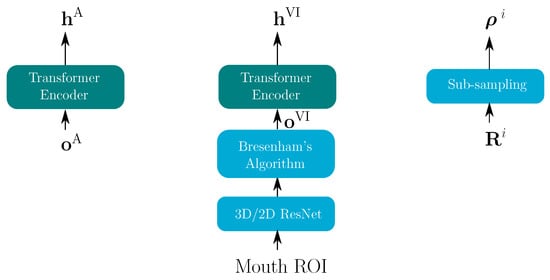 For both systems, OpenFace [49] was used for face detection and facial landmark extraction. The speaker’s face was detected at 25 frames per second. The digital differential analyzer, which uses the Bresenham algorithm, was used to align the audio and video streams. In the hybrid model, two kinds of video features were extracted: The video appearance model (VA) used 43-dimensional IDCT coefficients of the gray-scale region of interest (ROI) as features, where the mouth ROI was extracted from the facial mouth landmarks with a rectangular box.