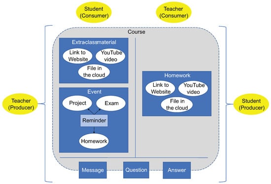 Figure 2 shows the high-level model for the teacher and student roles, which can act as both information producers and consumers. In the next subsections, we describe the user models of our proposal following the producer/consumer approach for each role identified in our former study.