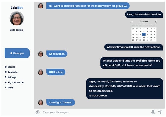 - Subjects: In this case, the system can interact with the students about the classes they have registered. TutorDocente [27], Lecturer’s Apprentice [34], T-Bot/Q-Bot [35], Tribubot [37], LTKA-Bot [39], Gómez Róspide and Puente [42], Chatbot [43], and Infobot [46] are chatbots that allow conversations of this type.