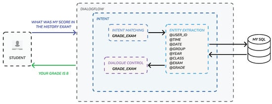 - Reyes, R.; Garza, D.; Garrido, L.; De la Cueva, V.; Ramirez, J. Methodology for the Implementation of Virtual Assistants for Education Using Google Dialogflow. In Advances in Soft Computing; Martínez-Villaseñor, L., Batyrshin, I., Marín-Hernández, A., Eds.; Springer International Publishing: Cham, Switzerland, 2019; pp. 440–451. [Google Scholar]