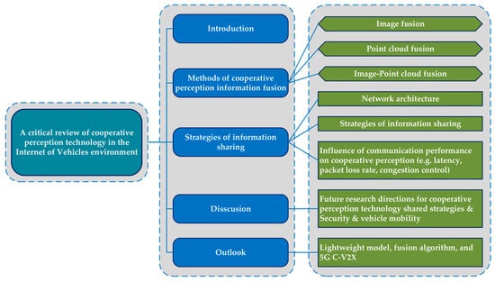 An overall diagram of the critical review on cooperative perception in the Internet of vehicles environment.