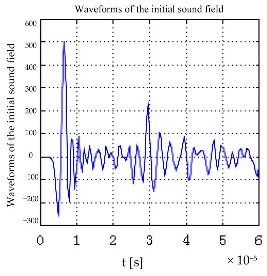 After the original sound field is excited, the original sound field propagates outwards. In the course of the propagation of the original sound field, the amplitude of the sound pressure will change due to the attenuation and other reasons. Figure 9 is the original sound field waveform detected by the magneto-acoustic receiver at position .