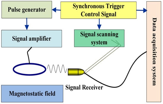 (1) As the excitation source, the pulse electrical signal can directly excite the magnetoacoustic signal in the rail, and the generated signal is easily received by the sensor, so it can detect in various harsh environments; (2) the control of the pulse electric signal source is very flexible and can be easily moved near the defect near field, which provides convenience for rail defect detection; (3) through the adjustable magnetic field space and the focusing detection of the magnetoacoustic signal receiver, the ultrasonic detection resolution can be realized.