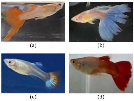 Illustration of guppy fish (a–d).