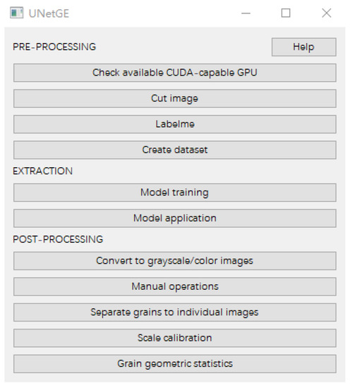 The control panel interface of UNetGE has three subpanels (Figure 3) that correspond with the three fundamental steps in the processing workflow and, thus, eleven utilities to implement all steps and obtain the objects.