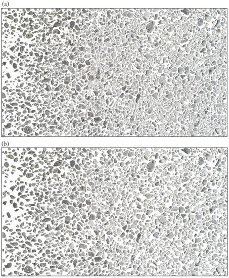 For the cut effect, two methods have been raised to solve it: (1) firstly, the morphological correction raised by many engineering geologists [28,34,35] was to conduct relations between 3D shapes of some grain samples and their projected 2D sections; (2) secondly, some researchers, e.g., [36,37], preferred Monte Carlo experiments to study grain size distribution using large stochastic simulation datasets, because they thought that such a statistical significance using large stochastic datasets would truly help correction of the grain-size distribution for cut effect. Furthermore, Cheng et al. [33] conducted stochastic simulations and summarized that at least hundreds of grain size datasets would remove the cut effect for the most part, which meant that the correction of the 2D-to-3D conversion could also be more or less solved by requiring the large datasets of grain size. Meanwhile, the era of geoscientific big data requires the larger area data of grain size.