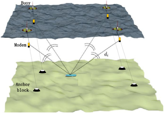 In various applications of underwater acoustic networks, node location is a basic and important task. Underwater acoustic network nodes, especially mobile nodes, such as autonomous underwater vehicles (AUVs), need node location information during data collection. For example, the data will be invalid if the location information is missing for the temperature data collected by mobile nodes. Because the electromagnetic waves have limited communication ranges due to the strong propagation in water, the widely used positioning system Globe Positioning System (GPS) is not feasible in the underwater environment [1,2].