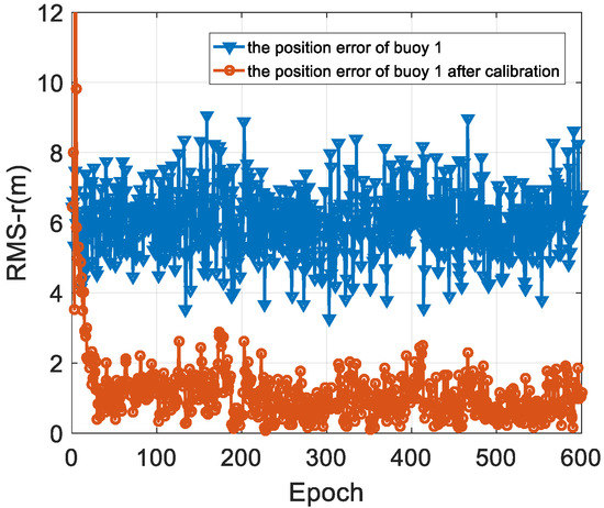 The RMS results are analyzed in Table 1 and Figure 7. The modem position after spatial position calibration has much smaller average and maximum values when compared with the GPS measurement. It can be seen from Figure 7 that the position error of the modem is significantly reduced after spatial position calibration.
