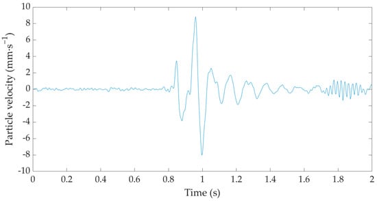 A total of 200 phenomena were evaluated in both the time and frequency domains, and the individual phenomena were similar in nature and character in both the frequency and time records. The correlation coefficient R2 was 0.936 and the average deviation from the measured values of the oscillation velocity was 0.0052 mm·s−1, which is very low.
