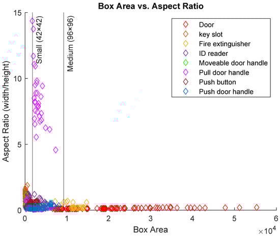 Manually selecting the anchor boxes for the dataset is challenging as object groups are scattered with varying sizes and aspect ratios (Figure 1). A clustering algorithm, such as k-means [40], can group boxes of similar aspect ratios and sizes based on a specific metric. The Intersection over Union (IoU) distance metric is used to estimate the anchor boxes that better represent the dataset objects. IoU distance metric-based clustering algorithm can produce anchor boxes that fit the dataset objects efficiently as it is invariant to the boxes’ sizes [15]. Whereas other metrics such as Euclidean distance can lead to large errors when the boxes’ sizes increase [15].