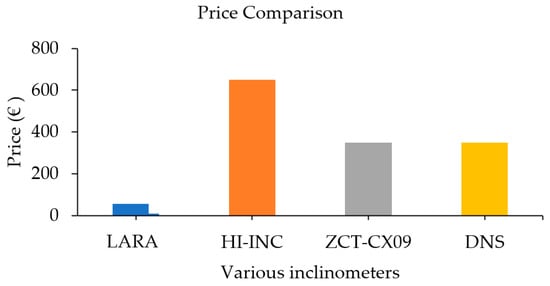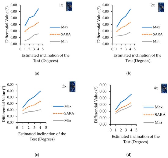- Ruzza et al. [60], who introduce a low-cost inclinometer based on the Arduino technology and MEMS circuits with RMS error of between ±0.162 and ±0.304°.