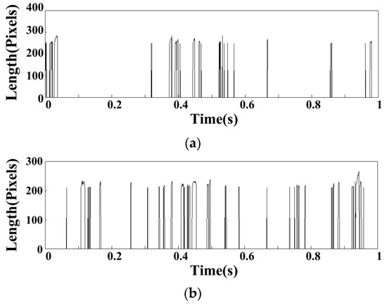 The 5 × 5 was selected as the median value of the neighborhood that can filter the noise points and retain the flame edge details well. The processing result was changed from Figure 4a to Figure 4b.