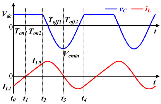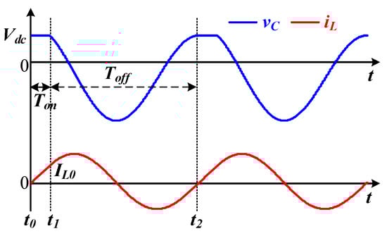 According to Figure 3, the critical switch-off duration Toff for ZVS can be obtained by letting vC(−Toff) = Vdc and iL(−Toff) = IL0. In other words, Equation (19) can be established.