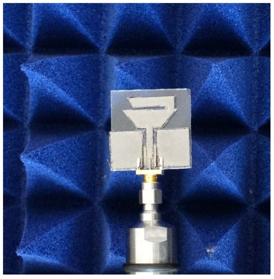 In this proposal, for the antenna design, graphene foil was employed (XG Leaf B, Lansing, MI, USA) with a thickness of 240 μm and electric conductivity of 3.5 × 105 S/m. The dielectric was glass with relative permittivity of 6 and a thickness of 2 mm. In order to obtain the design and optimize it, high-frequency structural simulation (Ansys HFSS, Canonsburg, PA, USA) was employed.