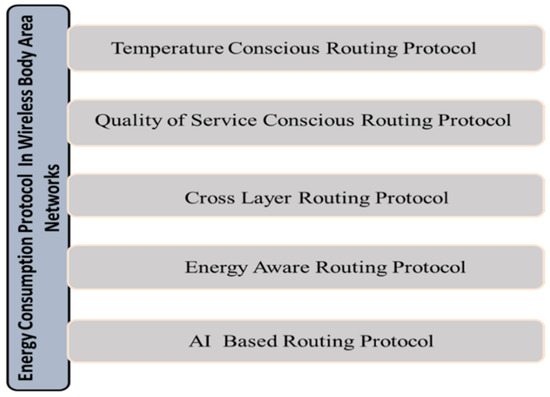 The WBAN nodes should consume as little power as possible in order to extend the network’s lifespan and improve its stability. As the WBAN would use renewable energy, we must understand why we need to add the energy optimization feature in the model. The energy might be abundant, but while marking a model as ideal, we check some standards. For example, out of the given models which gives the most efficient output while being energy conservative. Such models are best for the longer run and promote energy conservation, model stability and energy optimization. In our case, the sensors might be one of the components which could be using energy a lot more than they actually need to or possibly the energy is not optimally used by the sensors and so the study addresses the uses and suggests some possible solutions. Using energy-efficient routing algorithms, we sought to reduce the WBAN’s power usage as much as possible in this section of the paper. Due to inherited difficulties and specifications, existing routing protocols for wireless sensor networks and mobile ad hoc networks do not work efficiently with WBAN. Figure 1 shows the WBAN routing protocols that are now in use, followed by a review of the various routing protocols that have been established so far.