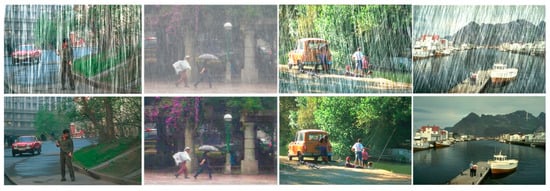 - Yasarla, R.; Patel, V.M. Confidence measure guided single image de-raining. IEEE Trans. Image Processing 2020, 29, 4544–4555. [Google Scholar] [CrossRef] [Green Version]