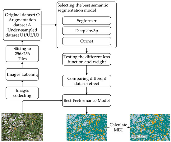 We used the Segformer [22] semantic segmentation framework for model construction. Segformer uses Transformers as encoders and lightweight multi-layer perceptrons (MLPs) as decoders, which makes it simple and efficient, yet powerful, as it does not require positional encoding and complex decoders. Segformer has presented state-of-the-art efficiency, accuracy, and robustness on three publicly available data sets: Cityscapes, ADE20K, and COCOStuff [22]. We also compared its performance with that of other advanced semantic segmentation algorithms, including OCRNet [23], Deeplabv3+ [24], PSPNet [25], DNLNet [26], FCN [27], GCNet [28] and SFNet [29]. Among them, Segformer is a Transformer model, while the rest are convolutional neural network (CNN) models.