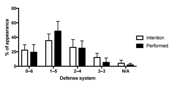 3.2. Defensive Intention vs. Actually Performed Defense