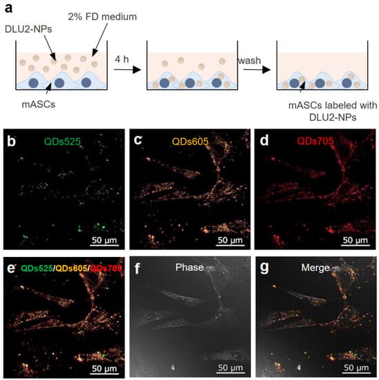 ASCs labeling by DLU2-NPs. A schematic diagram of ASCs labeling by DLU2-NPs (a). The confocal microscope images of ASCs labeled with DLU2-NPs (b–g).