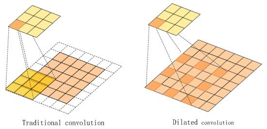 As shown in Figure 7, when the dilation factor is 2, the dilated convolution has larger receptive fields than the original convolution.