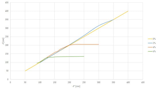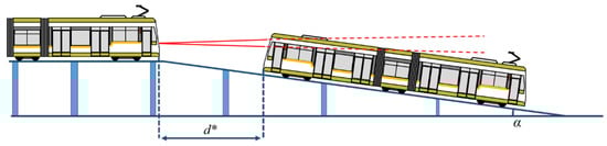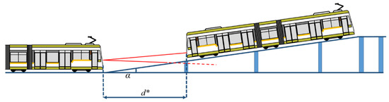 A scaled downhill track was prepared using pillars and we placed the tramcar target at increasing distances, d, until the information from the LiDAR sensor did not match the reference distance d*, with the result shown in Table 7 and summarized in Figure 12.