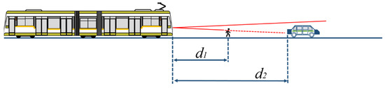 The braking distance is longer for rail vehicles [10], and the maximum speed is limited to below 30 km/h in the mixed auto and rail traffic lines [11]. In the independent lines, the trams can be operated at speeds of 50 km/h or more, and the braking distance can be more than 90 m in several malfunction situations [12]. If the speed is 70 km/h, the safety distance is over 120 m [12]. In the special situation of the tram’s long braking distances, some precautions must be taken, such as the GPS map matching for active speed limitations [13] and implementation of long-range sensing for the automated braking system [14].