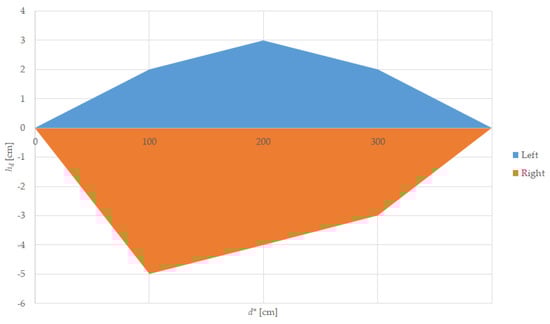 There are two possibilities: uphill slope and downhill slope. An important factor for these experiments is the height of the sensor above the track. Scaled height of the sensor axis is calculated in Equation (11).