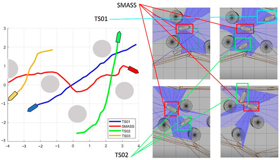 - The path planning problem and SMASS decision problem could be solved simultaneously. SMASS could find the optimal path to the target point through known obstacle information. Under the unknown environment, the SMASS could detect the position of obstacles by laser radar and accurately avoid the obstacles.