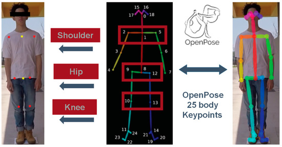To accomplish this, we used the advantage of an OpenPose [14] algorithm. In addition, we performed preliminary training on the model so that it can serve as one of the additional tools for our skeletal detection. As a result, it has an effective human body posture detection method that can turn subjects’ limbs and torsos into feature points with geometric meanings and can resist noise well. As a result, it will not be impacted by various noises of the subjects, including body shape, height, race, clothes, and other factors.