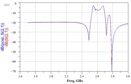 WLP is the next step in miniaturization and cost reduction [,,,,,,,]. In WLP, one or two organic or inorganic layers on top of the piezoelectric crystal, such as a lithium (LiTaO3, LT) piezoelectric substrate, form cavities above the active portions of the chip, which can protect the susceptible SAW device structure from probable injuries, such as dust or corrosion. Different processes, such as the production of polymer caps utilizing a sacrificial layer or dry film resist lamination techniques, are used to create these hollow structures [,,]. The SAW devices are also sealed with a stiff cap structure using wafer-to-wafer or chip-to-wafer bonding technologies. The cap layer made of glass or polymer film with via interconnects were formed to contact the external circuits and the chip’s pads [,]. Partially limiting the interdigital transducer (IDT) regions while leaving the SAW devices’ IOs available is more cost-effective. A self-packaged SAW device using a boundary acoustic wave, which does not require cavities or a particular processing approach for making sturdy packages, is even better from a functional standpoint. However, because it uses Au interdigital transducers deposited on LiNbO3 substrates, which has a greater cost, this filter is not advantageous in terms of cost and filter qualities. Typically, these devices operate in the mobile environment at frequencies ranging from 1040 to 1120 MHz, which do not match the high-frequency requirement.