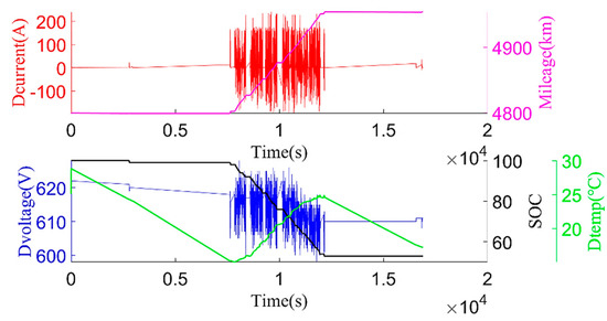 Figure 14, Figure 15 and Figure 16 show that the average discharging current of the battery in different seasons was different. The average discharging current in spring was lower than the average discharging current in summer and winter, which may be caused by the frequent use of air conditioning in hot and cold weather. The change in the discharging current can reflect the operating habits of the driver to a certain extent, and the discharging rate also has a great impact on the SOH. Therefore, when considering the factors that affect the state of health, the discharging current needs to be taken into account as a parameter.