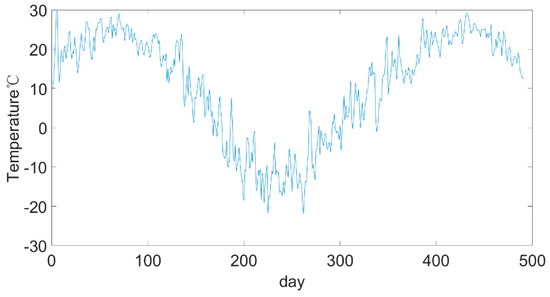 The environmental temperature data came from Airwise (hz.zc12369.com, accessed on 11 July 2021), which is a visual display platform of atmospheric environmental data. It can provide hourly weather forecast data for key cities across the country, as well as historical weather data for the past ten years, including temperature, humidity, wind speed, wind level and so on. The bus ran from 5:00 to 23:00. The temperature data during this period of time were extracted from the ambient temperature data, and the average value was calculated to obtain the daily average temperature data from May 2019 to September 2020, as shown in Figure 5.