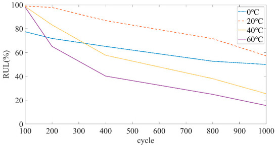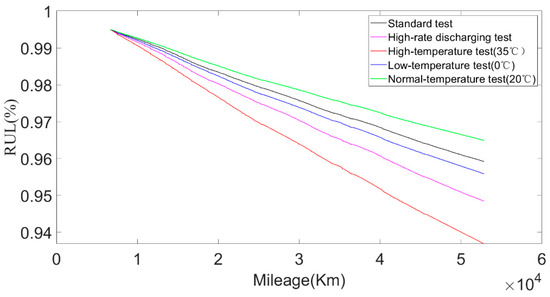 RUL calculation results of battery under different test environments.